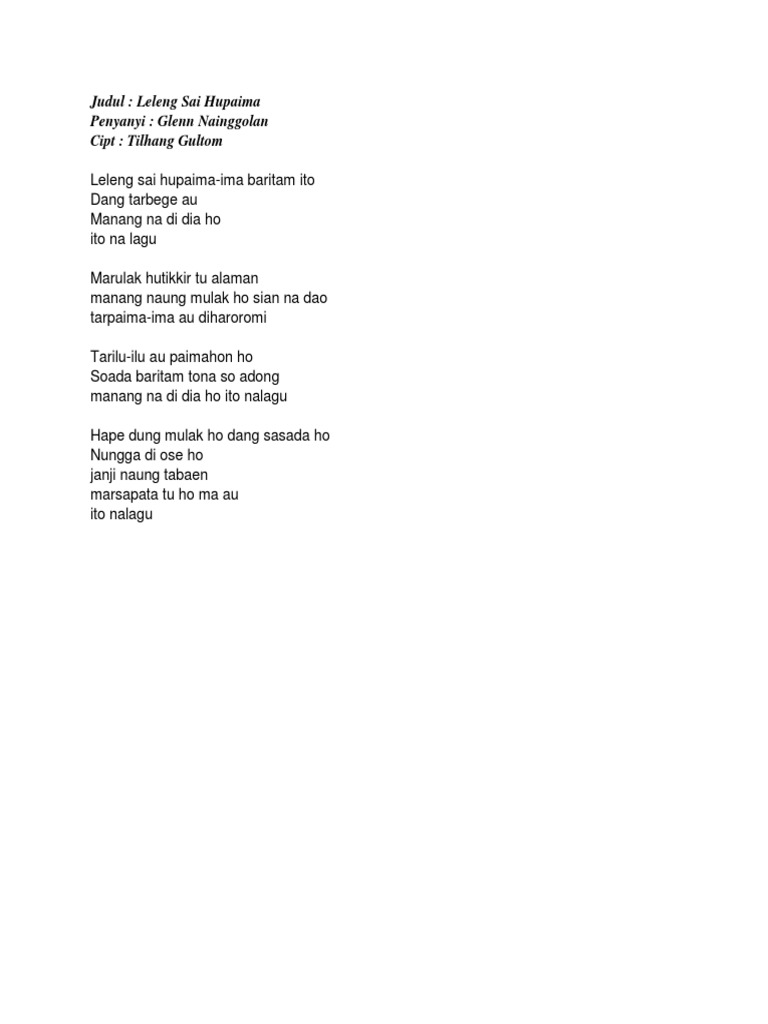 Dung soadong huida margabus so tu au. Lirik Lagu Leleng Ma Hupaima by Style Voice. Soada baritam tona so adong.